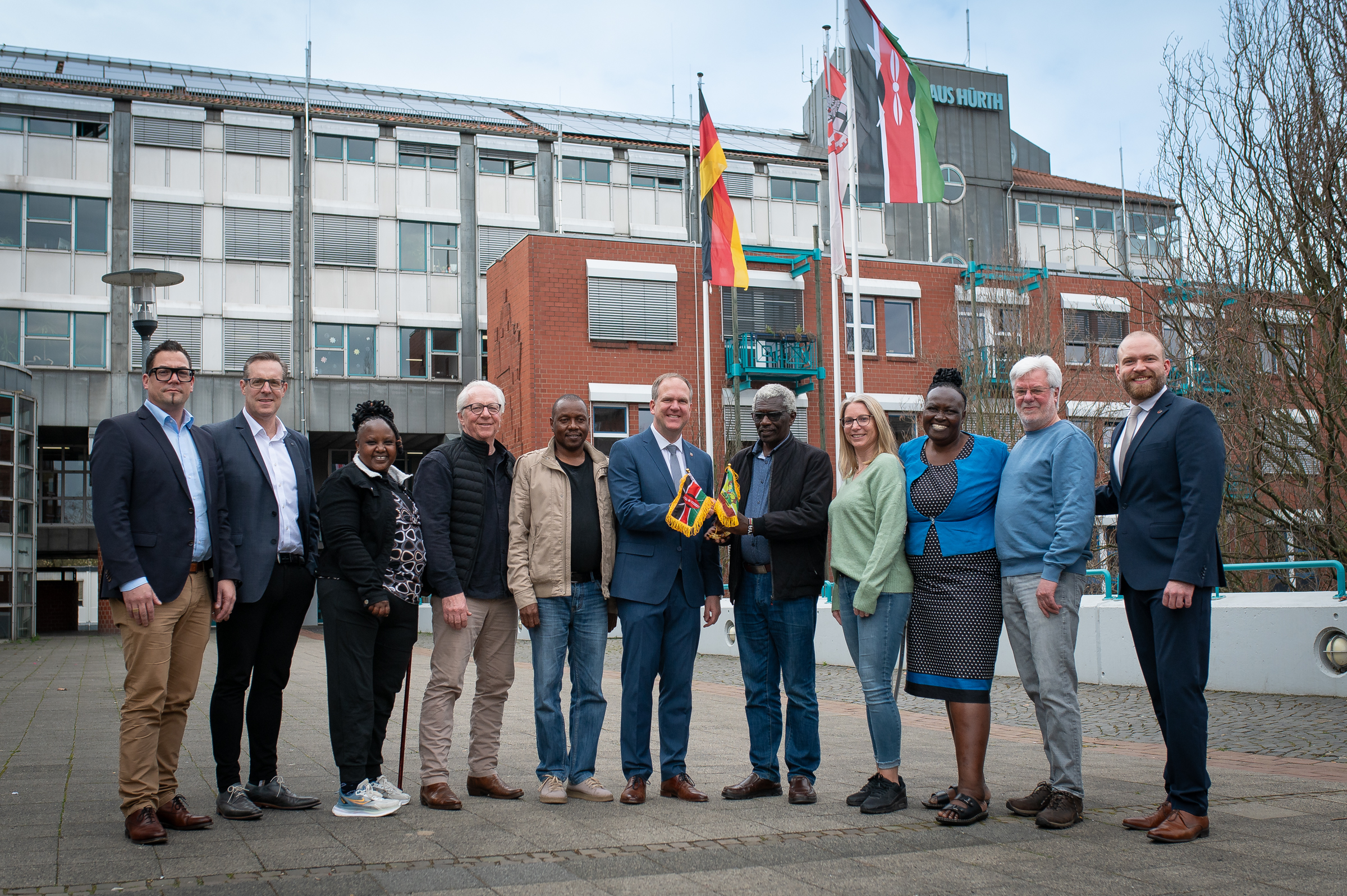Eine vierköpfige Delegation aus der kenianischen Partnerstadt Kabarnet war zu Gast in Hürth. Der Besuches ist Bestandteil eines aktuellen Bau- und Zusammenarbeitsprojektes der Partnerstädte zur Erweiterung der „Kabarnet Huerth Secondary Day School“, die 2007 auf Initiative aus Hürth gegründet und seit dem ständig ausgebaut wurde. Bürgermeister Dirk Breuer begrüßte Projektkoordinatorin Caroline Kemboi, Juliet Washa, Schulleiterin der Kabarnet Hürth–Schule, Stadtdirektor a.D. Julius Bolei, der inzwischen dem Verwaltungsvorstand der Schule vorsitzt und Reuben Rutto, Dezernent für Wohnungswesen und Stadtentwicklung des Baringo County, dessen Verwaltungssitz Kabarnet ist.